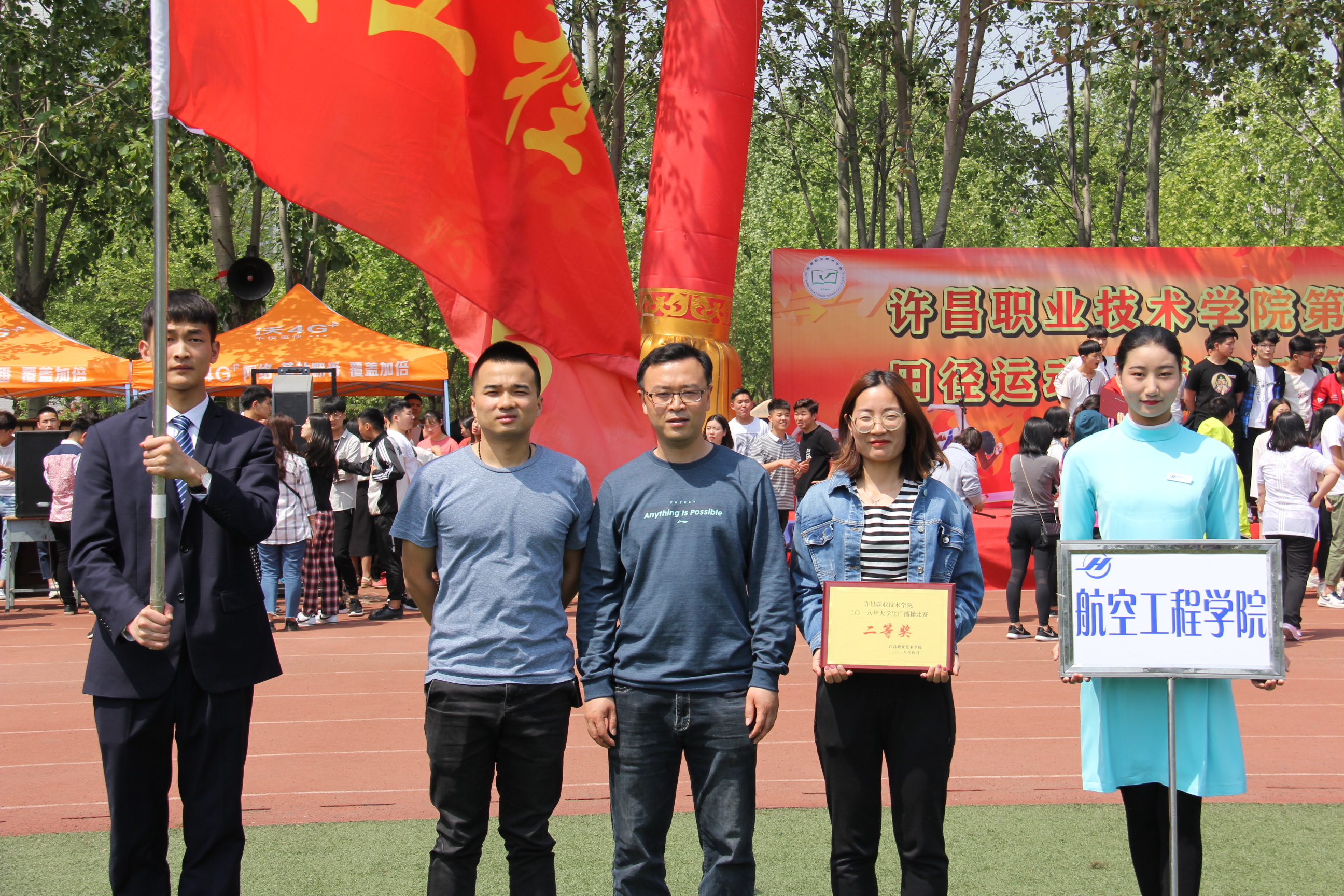 本届运动会,我院捷报频传。集体项目上,我院广播操比赛荣获二等奖。个人项目上,我院17级高铁二班潘万婷同学在女子800米比赛中荣获全校第一、16级高铁三班胡婷婷同学在跳高比赛中荣获全校第二、17级高铁二班李永记同学在男子5000长跑比赛中荣获全校第四名的好成绩。